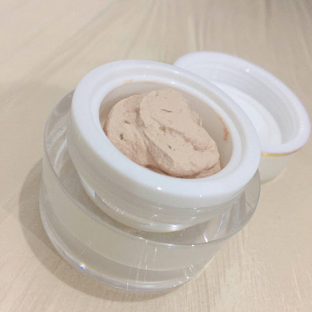 เปิดมาด้านในเป็นกระปุกแก้วดูหรูหรา เนื้อครีมกันแดด สีไข่ไก่ที่เหมาะกับทุกสภาพผิว