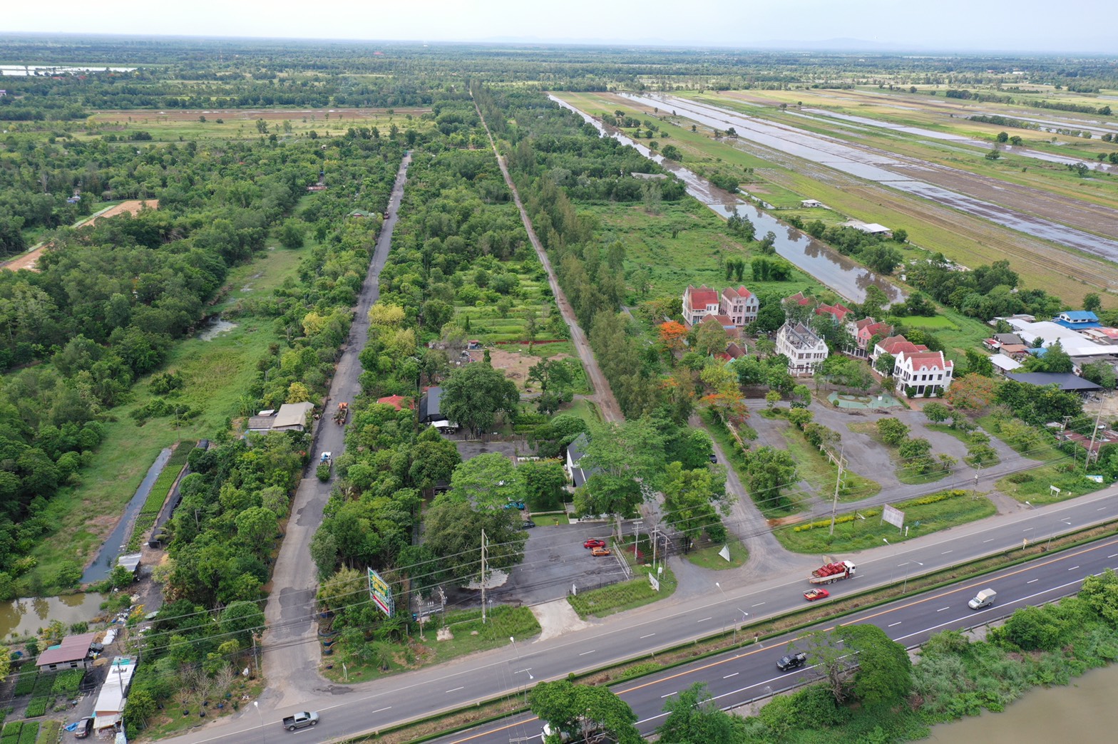 ที่ดิน บ้านสวน คลอง 14 องครักษ์ นครนายก ติดถนนวงเวียนใหญ่ 22-0-78 ไร่