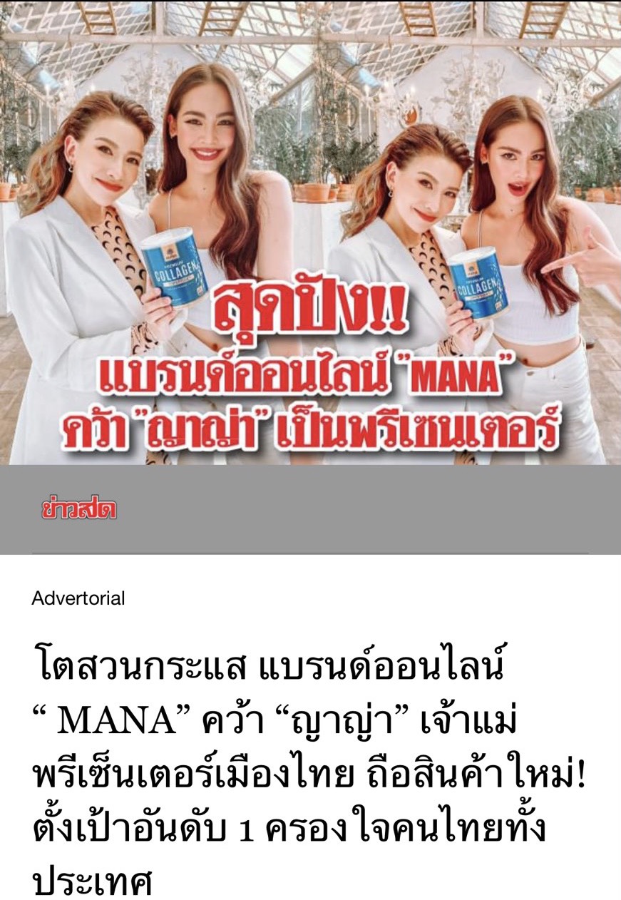 โตสวนกระแส แบรนด์ออนไลน์ “ MANA” คว้า “ญาญ่า” เจ้าแม่พรีเซ็นเตอร์เมืองไทย ถือสินค้าใหม่ตั้งเป้าอันดับ 1 ครองใจคนไทยทั้งประเทศ