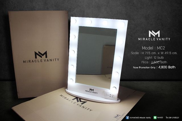 | *********กระจกแต่งหน้า Miracle Vanity รุ่น Mc1 ********* หลอดไฟแต่งหน้า 10 ดวง ขนาด สxก 57.5 cm. x 49.5 cm มาพร้อมสวิตช์ไฟ + 2 ช่องเสียบเพื่อรองรับอุปกรณ์เสริมความงาม กระจกคุณภาพสูง+หนาพิเศษ สีเงาพิเศษ มีให้เลือก ขาว - ดำ รับประกันระบบไฟ 6 เดือน โปโมชั่นพิเศษ จากราคาปกติ 4,900 บาท เราขายเพียง 3,800 บาท รวมจัดส่งและประกันทั่วประเทศ พิเศษจำนวนจำกัด!!!!! ---------------------------------------------------- Miracle Vanity รุ่น MC2 ขนาด ส 71.5cm.xก 49.5cm ไฟแต่งหน้า 12 ดวง กระจกใหญ่พิเศษส่องแบบเต็มๆ โปรโมชั่นพิเศษจากปกติ 6,500 บาท ขายเพียง 4,800 บาท(ด่วนจำนวนจำกัด) ‼️ส่งฟรี+ประกันทั่วประเทศ‼️ สินค้ารับประกัน 6 เดือน โทร: 081-2905021 Facebook : กระจกแต่งหน้า Miracle Vanity Line : aof420 |