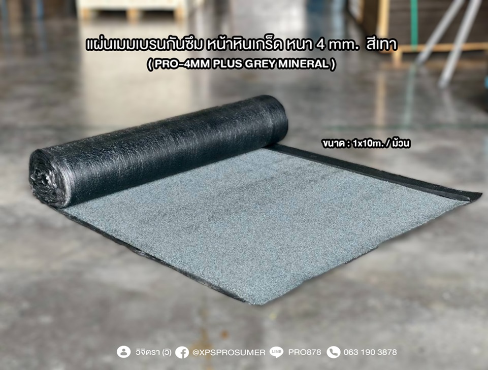 1.) แผ่นเมมเบรนกันซึมหน้าหินเกล็ด หนา 4mm. ( PRO-4MM PLUS GREY MINERAL ) ใช้สำหรับพื้นที่ภายนอก ทนต่อความร้อนรังสี UV และทนต่อการเหยียบย้ำ
