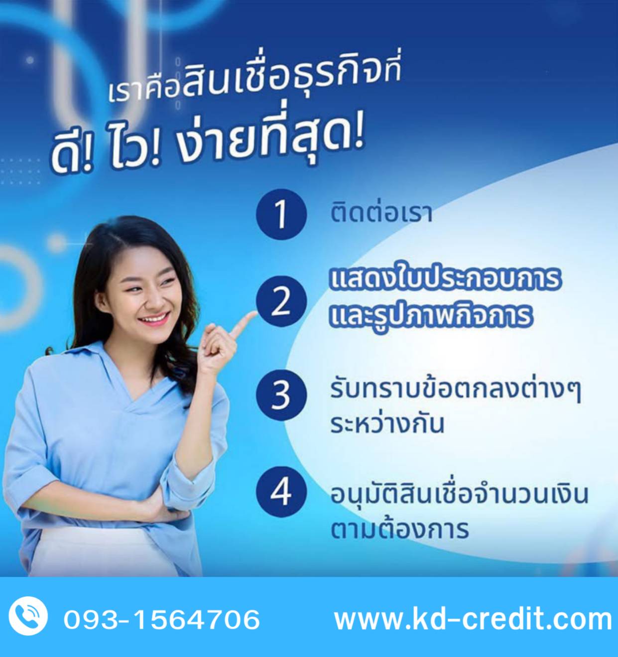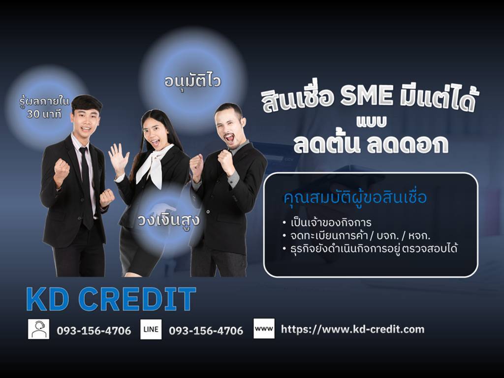 [บริการ] สินเชื่อเพื่อธุรกิจครบวรจร KD CREDIT สนใจโทร. 093-1564706 คุณบาส พนักงานสุภาพ เงินหมุนขาด ไม่ต้องกังวล สินเชื่อเพื่อธุรกิจจากเรา ช่วยให้ธุรกิจของคุณหมุนคล่องตัวได้อย่างสบายใจ |