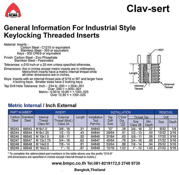 มีลิ่มล๊อกป้องกันการเคลื่อนตัวเดินหน้าหรือถอยหลังขณะขันสกรู หากเกลียวในของ Keylock thread insert ชำรุดก็สามารถถอดเปลี่ยนตัวเองได้